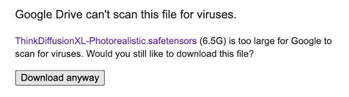 Important: If your file is too large, Google drive will present you with this confirmation: