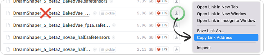 Find the correct link to right-click on Civitai: