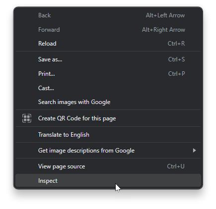 1. Go to Inspect mode with a right click & Inspect (or F12 button on Windows).