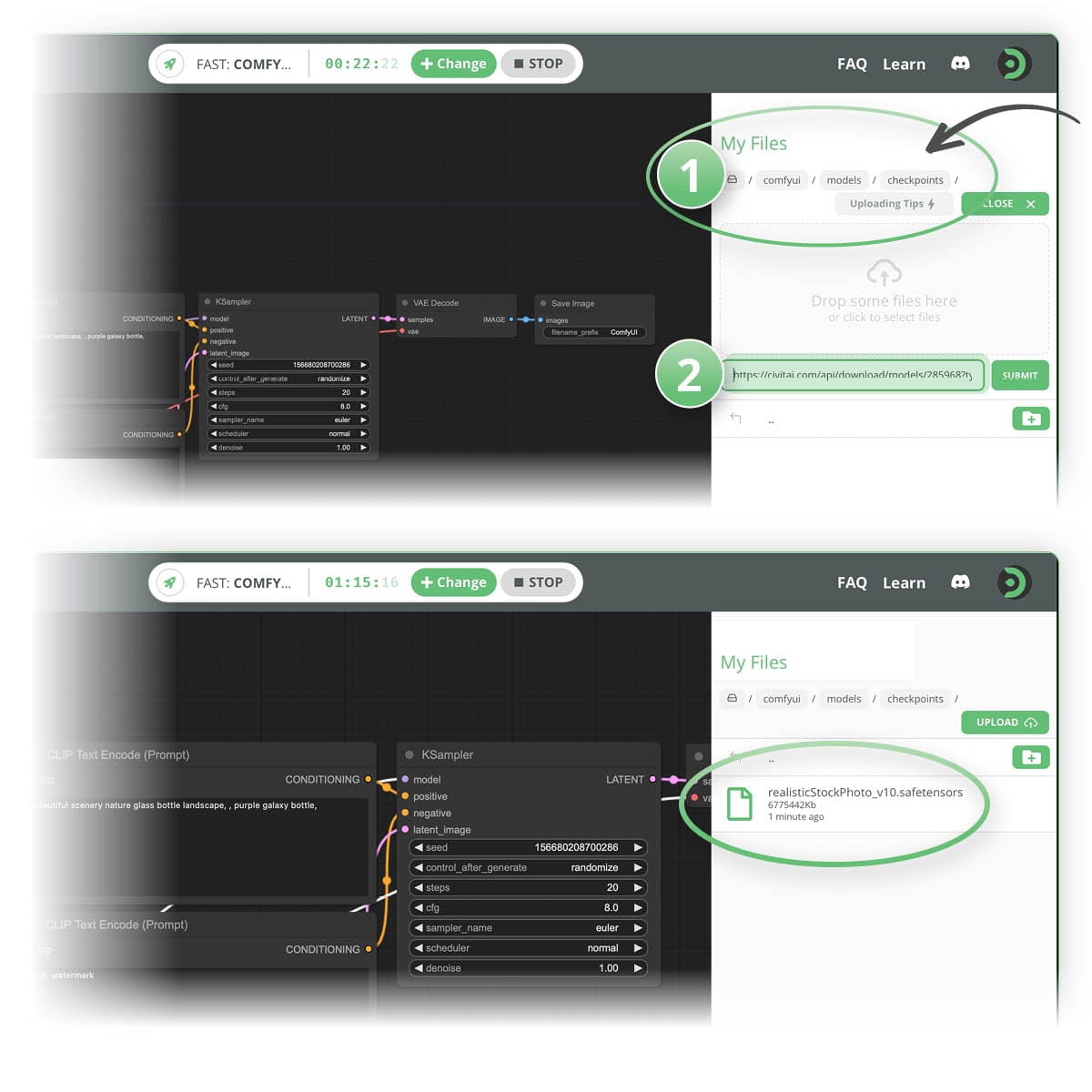 For example, to upload a custom checkpoint model by URL, open your My Files panel, and navigate to the following folder: ../user_data/a1111/models/Stable-Diffusion/